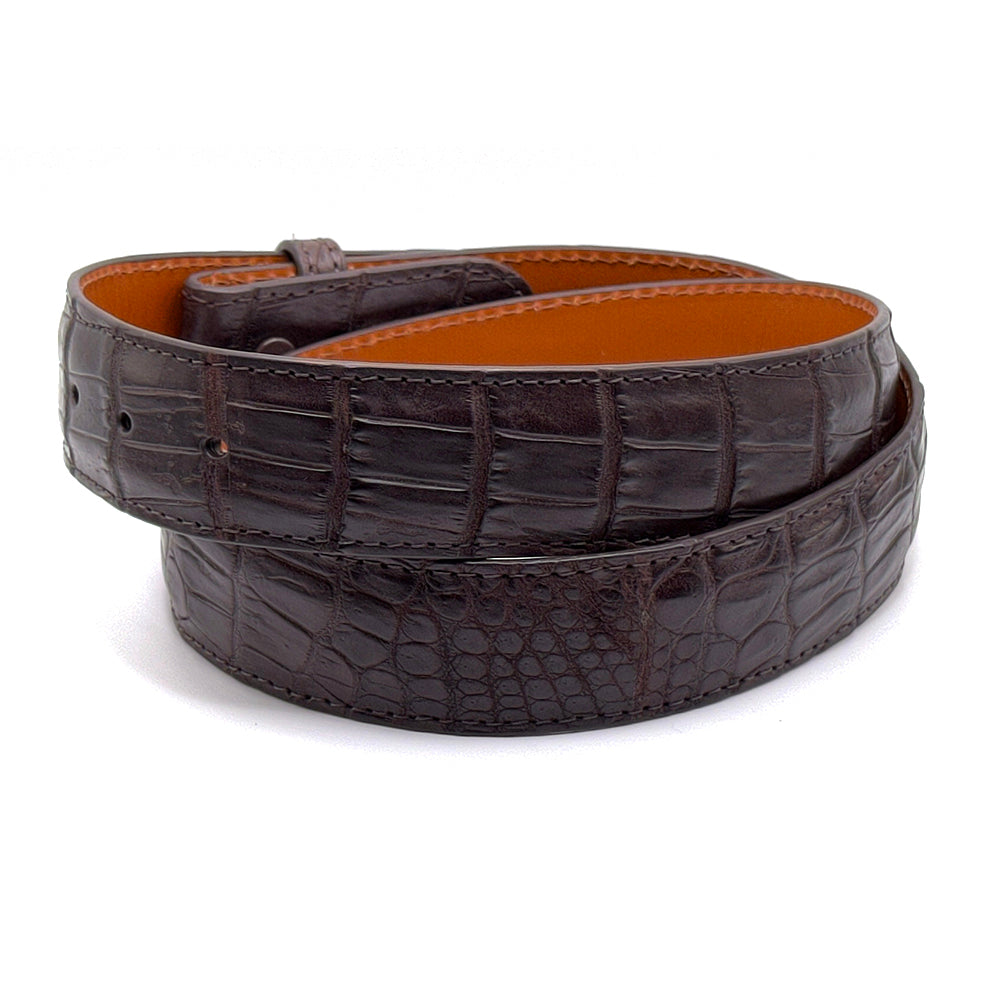 Design: This is a classic Nile crocodile belt with a classic dark brown color, backed with premium-quality cowhide, and finished with a hand-beveled, hand-stained edge.